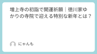 未分類 増上寺の初詣で開運祈願|徳川家ゆかりの寺院で迎える特別な新年とは? 徳川家ゆかりの増上寺で初詣。開運や厄除けのご利益、混雑状況、見どころ、参拝のコツを徹底解説。東京タワーとともに迎える特別な新年の魅力を紹介します。 2025.12.11 未分類