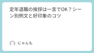 挨拶例文 定年退職の挨拶は一言でOK?シーン別例文と好印象のコツ 定年退職の挨拶は一言でもOK!職場・送別会・メールなどシーン別の例文集と、感謝が伝わる話し方のコツを紹介。短くても印象に残るスピーチで、笑顔で退職日を迎えるための保存版ガイドです。 2025.10.06 挨拶例文