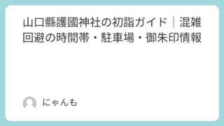 楽 山口縣護國神社の初詣ガイド|混雑回避の時間帯・駐車場・御朱印情報 山口縣護國神社の初詣について、参拝時間や御朱印・御守の授与、アクセスと駐車場、三が日の混雑状況を分かりやすく解説します。元旦深夜や日中は混雑しやすいため、早朝や夕方、1月4日以降の分散参拝がおすすめ。落ち着いた環境で新年を迎えたい方に役立つ初詣ガイドです。 2025.12.17 楽