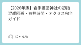 楽 【2026年版】岩手護國神社の初詣|混雑回避・参拝時間・アクセス完全ガイド 2026年の初詣に岩手護國神社を検討している方へ。ご利益や参拝時間、混雑しやすい時間帯、アクセス方法、雪の日の注意点まで詳しく解説します。盛岡市内で落ち着いて初詣をしたい方におすすめの神社です。 2025.12.15 楽