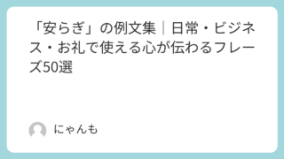 お礼 「安らぎ」の例文集|日常・ビジネス・お礼で使える心が伝わるフレーズ50選 「安らぎ」の自然な使い方と例文50選をシーン別に紹介。日常・ビジネス・お礼・手紙で心が伝わるフレーズを厳選。優しい日本語表現を学べます。 2025.10.14 お礼挨拶例文