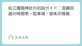 楽 松江護國神社の初詣ガイド|混雑回避の時間帯・駐車場・御朱印情報 松江護國神社の初詣について、参拝時間や御朱印・御守の授与、アクセスと駐車場、三が日の混雑状況を分かりやすく解説します。元旦深夜や日中は混雑しやすいため、早朝や夕方、1月4日以降の分散参拝がおすすめ。松江城近くで落ち着いて参拝したい方に役立つ初詣ガイドです。 2025.12.17 楽