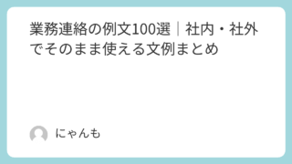 例文 業務連絡の例文100選|社内・社外でそのまま使える文例まとめ 業務連絡の書き方に迷ったときに役立つ、社内・社外対応の例文100選を紹介します。メールやチャットでそのまま使える短文から、丁寧でフォーマルな文例まで幅広く掲載。失礼にならない表現や注意点も解説しているので、新人からベテランまで安心して使える保存版です。 2025.12.15 例文