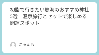 楽 初詣で行きたい熱海のおすすめ神社5選|温泉旅行とセットで楽しめる開運スポット 熱海で初詣に行くならここ!温泉旅行と一緒に参拝できるおすすめ神社5選を紹介。縁結びや金運などのご利益から混雑情報、アクセスまでわかりやすく解説しています。 2025.12.10 楽