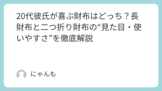 ギフト・プレゼント 20代彼氏が喜ぶ財布はどっち?長財布と二つ折り財布の“見た目・使いやすさ”を徹底解説 20代彼氏への財布は長財布と二つ折りのどっち?見た目・使いやすさ・収納力を比較し、生活スタイル別の選び方、相場、渡し方まで徹底解説。 2025.10.10 ギフト・プレゼントバッグ・小物・ブランド雑貨