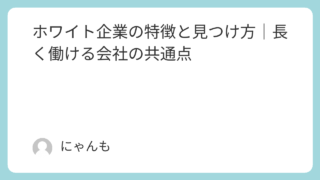 知 ホワイト企業の特徴と見つけ方|長く働ける会社の共通点 ホワイト企業の特徴と見分け方を解説。労働環境・評価制度・人間関係など、長く働ける会社の共通点や面接での確認ポイントを紹介します。 2025.10.09 知