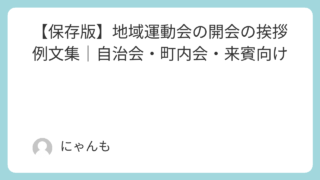 挨拶例文 【保存版】地域運動会の開会の挨拶例文集|自治会・町内会・来賓向け 地域運動会の開会挨拶に迷った方へ。自治会・町内会・来賓それぞれに使える例文と話し方のコツを紹介。明るく感謝が伝わる挨拶で会場を盛り上げよう! 2025.10.04 挨拶例文