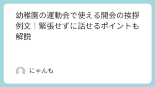 挨拶例文 幼稚園の運動会で使える開会の挨拶例文|緊張せずに話せるポイントも解説 幼稚園・保育園の運動会で使える開会挨拶例文を紹介。園長・PTA・保護者・司会者向けの実用フレーズと、緊張せずに話すコツを解説。短く温かい挨拶で子どもたちの笑顔を引き出そう! 2025.10.04 挨拶例文