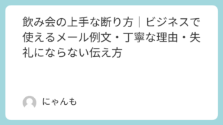 イベント 飲み会の上手な断り方|ビジネスで使えるメール例文・丁寧な理由・失礼にならない伝え方 飲み会を上手に断りたい方へ。ビジネスで使える丁寧な断りメール例文、角が立たない理由、NG表現を徹底解説。上司・同僚・取引先など関係別の断り方までわかる実践ガイド。 2025.12.01 イベント