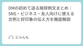 挨拶例文 DMの初めて送る挨拶例文まとめ|SNS・ビジネス・友人向けに使える文例と好印象の伝え方を徹底解説 初めてDMを送るときの挨拶文をSNS・ビジネス・友人向けにまとめて紹介。短い文例から丁寧な表現、依頼・営業まで網羅。好印象を与える書き方やNG例も解説した安心のDM挨拶ガイドです。 2025.12.05 挨拶例文