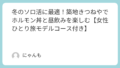 あわせて読みたい:冬のソロ活に最適!築地きつねやでホルモン丼と昼飲みを楽しむ【女性ひとり旅モデルコース付き】