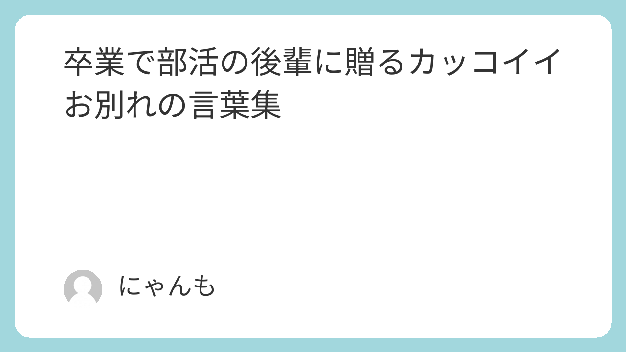 - 今日で先輩としての役目は終わる。でも、この部への想いは変わらない。強く、誇り高く戦え。